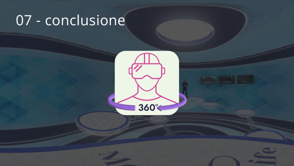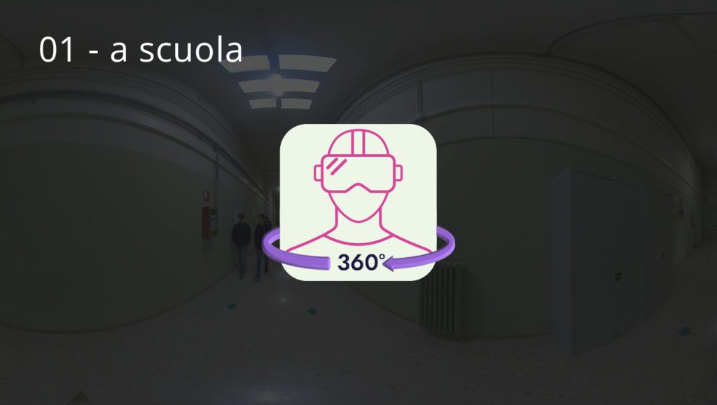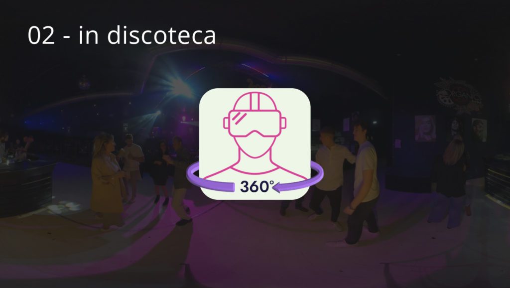 Nella sezione VR Video sono presenti scenari 3D nei quali i giovani potranno muoversi attraverso l’uso di visori anche abbinati al proprio smartphone o attraverso tablet e PC. Gli ambienti immersivi rappresenteranno le situazioni in cui quotidianamente ogni singolo ragazzo può imbattersi nelle situazioni di rischio (cadere nella trappola delle dipendenze) in alcuni dei contesti abituali in cui si muove.